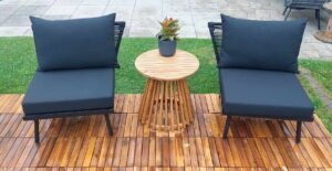 Loungesæt med 2 bambus stole og et eukalyptus bord med granitplade . Billede viser de 2 forskellige stole der kan vælges sammen med bordet.