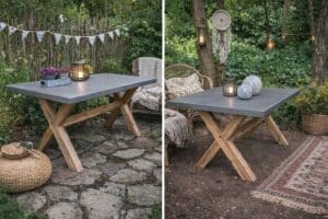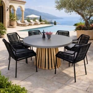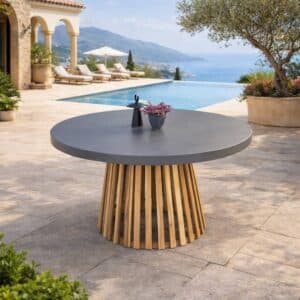 Spisebord / Havebord 50 mm cement top og ben I akacietræ.