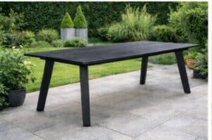 Havebord sort Nonwood med Aluminium stelrengøres blot med en fugtig klud. Bordet er designet til at modstå det danske vejr. Bordet er UV-resistent og vejrbestandigt, hvilket sikrer, at det hverken falmer, revner eller kræver oliebehandling. Rengøres blot med en fugtig klud.